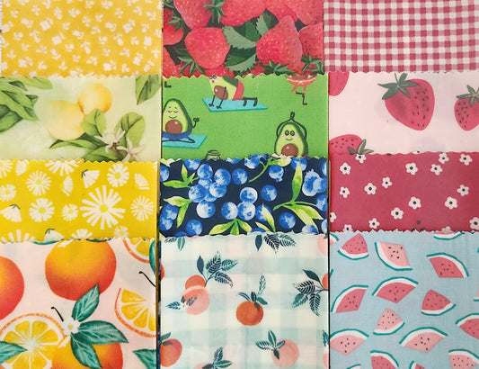 Beeswax Food Wrap: Fruit and Vegetable Prints Multi-pack